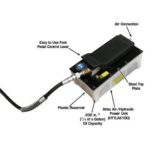 Although the manufacturer rates this lift at 1,650 lbs., Atlas® conservatively lists it at 1,500 lbs. to ensure accurate, real-world performance expectations. The lift is powered by a high-quality air/hydraulic pump (included) and requires an external 100 PSI air supply (not included).