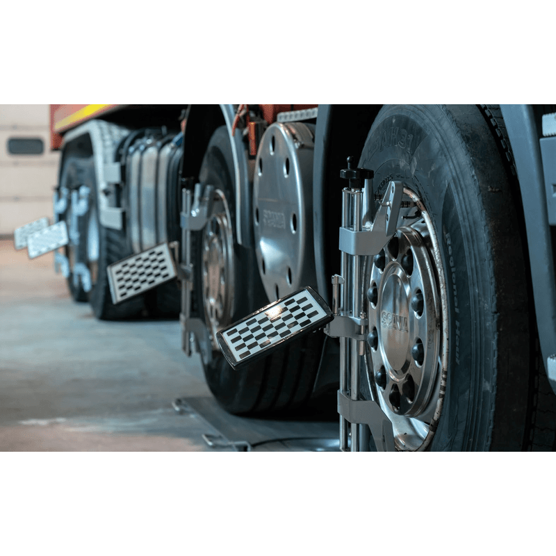 Four high-definition industrial cameras enable readings on up to four axles simultaneously, plus the ability to align vehicles with even more axles. Wide Scope technology allows the system to read over an extensive range of lengths and wheelbases providing .01 degrees of accuracy, along with real-time measurements for improved productivity. Modern lightweight targets are quick & easy to mount on many styles of tire rims.