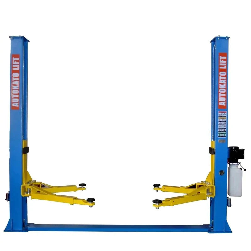 The Katool KT-H105 Two Post Vehicle Lift is a powerful solution with a lifting capacity of 10,000lbs. CE Approved and Certified, it surpasses safety standards, undergoing rigorous 115% dynamic loading and 150% static loading capacity tests. Featuring a manual safety release from two sides, base plate design, and dual hydraulic chain-drive cylinders, it ensures secure and efficient lifting. The rubber pad door opening protection enhances safety, and the lift comes equipped with screw-on pads and extension support adaptor sets of +100mm for added versatility. Powered by a top-level hydraulic system, it operates seamlessly with a 220V/60HZ/1PH configuration.