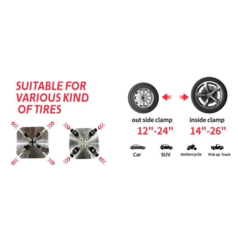 The Katool KT-T830 Wheel Clamp Tire Changer is a powerhouse for changing tires with ease! Its tough alloy steel jaw and stainless steel mounting head are designed for durability. The pedal-controlled air gauge and spade cover keep things simple and protect your rims. With a user-friendly pedal system, top-notch motor, and efficient lubricator, it's a breeze to change tires. Tailored for North America with a strong 110V motor, it even comes with a double side assist arm and a stainless bead breaker cylinder.